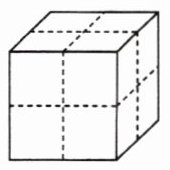 2. 如图,将一个正方体沿虚线切成三刀以后,表面积增加了$96\ cm^{2}$,这个正方体的体积是( )$cm^{3}$。