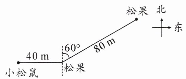 1. 小松鼠向( )走( )m可以吃到松果,再向( )偏( )( )°方向走( )m还可以吃到松果。
