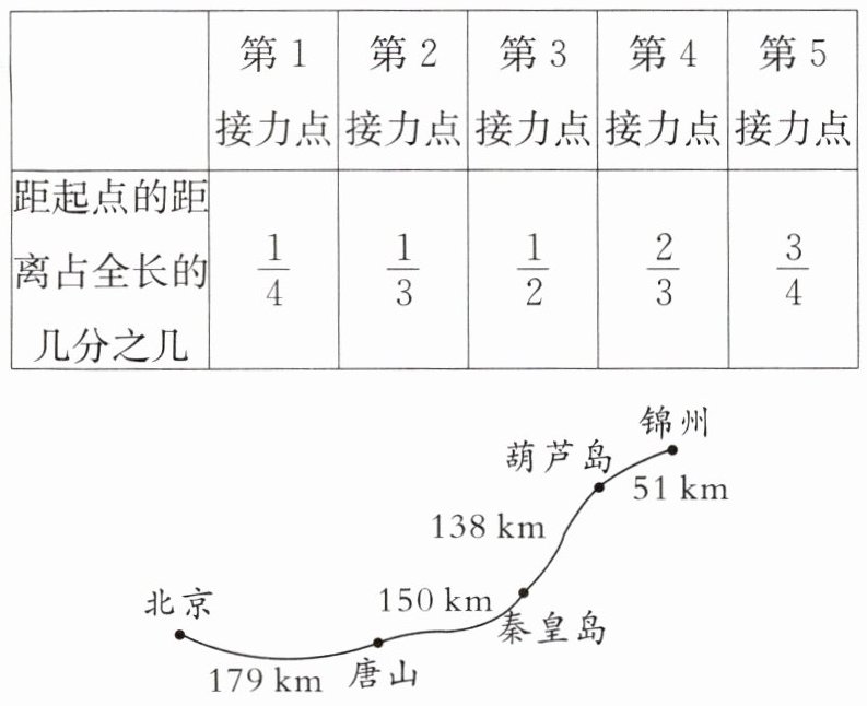 二、“跑向北京”长跑活动由五年级6个小组以接力的方式合作完成,下面是在整个长跑路线上设计的5个接力点。
