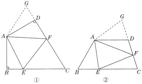 (2)探索延伸:如图②,若在四边形ABCD中,AB = AD,∠B +∠D = 180°,E,F分别是BC,CD上的点,且∠EAF = $\frac{1}{2}$∠BAD,(1)中的结论是否仍成立?并说明理由.