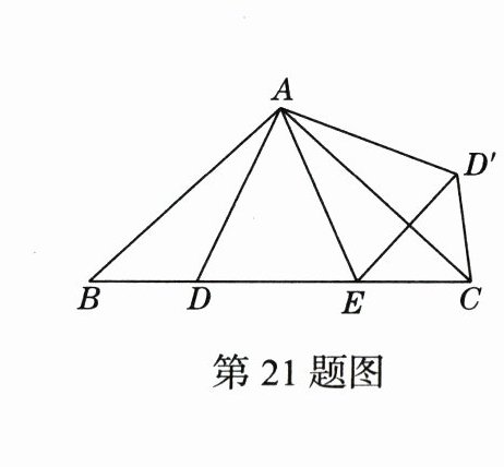21.(6分)如图,在△ABC中,AB = AC,D,E是BC边上的点,连接AD,AE,以△ADE的边AE所在直线为对称轴作△ADE的轴对称图形△AD'E,连接D'C,BD = CD'.