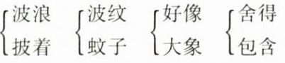 $\begin{cases}波( ) \\披( ) \end{cases}$ $\begin{cases}纹( ) \\蚊( ) \end{cases}$ $\begin{cases}像( ) \\象( ) \end{cases}$ $\begin{cases}舍( ) \\含( ) \end{cases}$