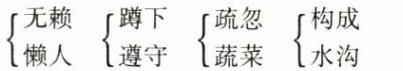 $\begin{cases}赖( ) \\懒( ) \end{cases}$ $\begin{cases}蹲( ) \\遵( ) \end{cases}$ $\begin{cases}疏( ) \\蔬( ) \end{cases}$ $\begin{cases}构( ) \\沟( ) \end{cases}$