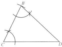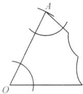 9. 如图为去年在某地发现的一块三角形陶瓷碎片的一部分,现打算复制一块完整的陶瓷片,请你根据提供的信息用尺规作一完整的三角形陶瓷片。