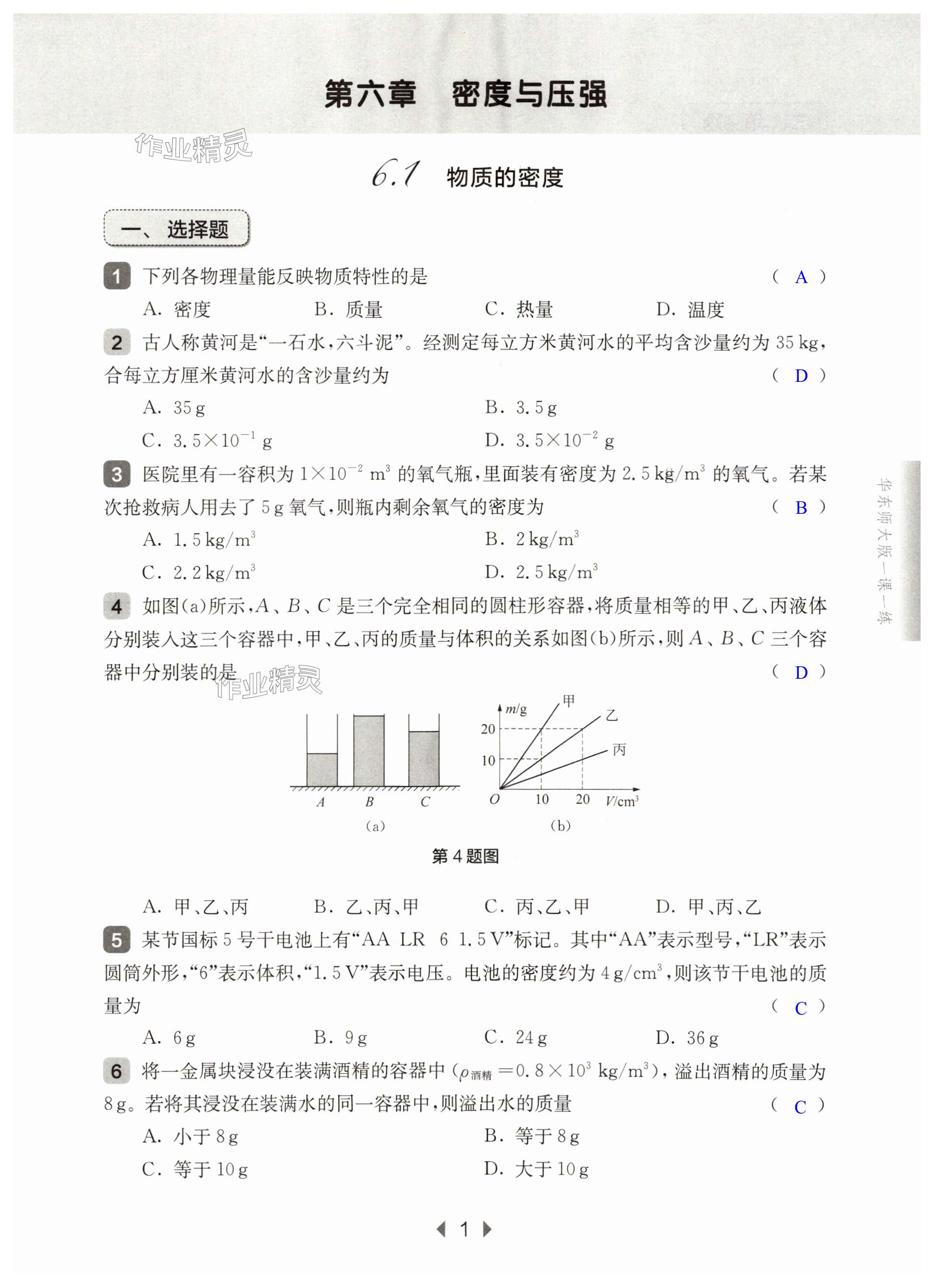 注:目前有些书本章节名称可能整理的还不是很完善,但都是按照顺序排列的,请同学们按照顺序仔细查找。练习册 2025年华东师大版一课一练八年级物理下册沪教版五四制 答案主要是用来给同学们做完题方便对答案用的,请勿直接抄袭。