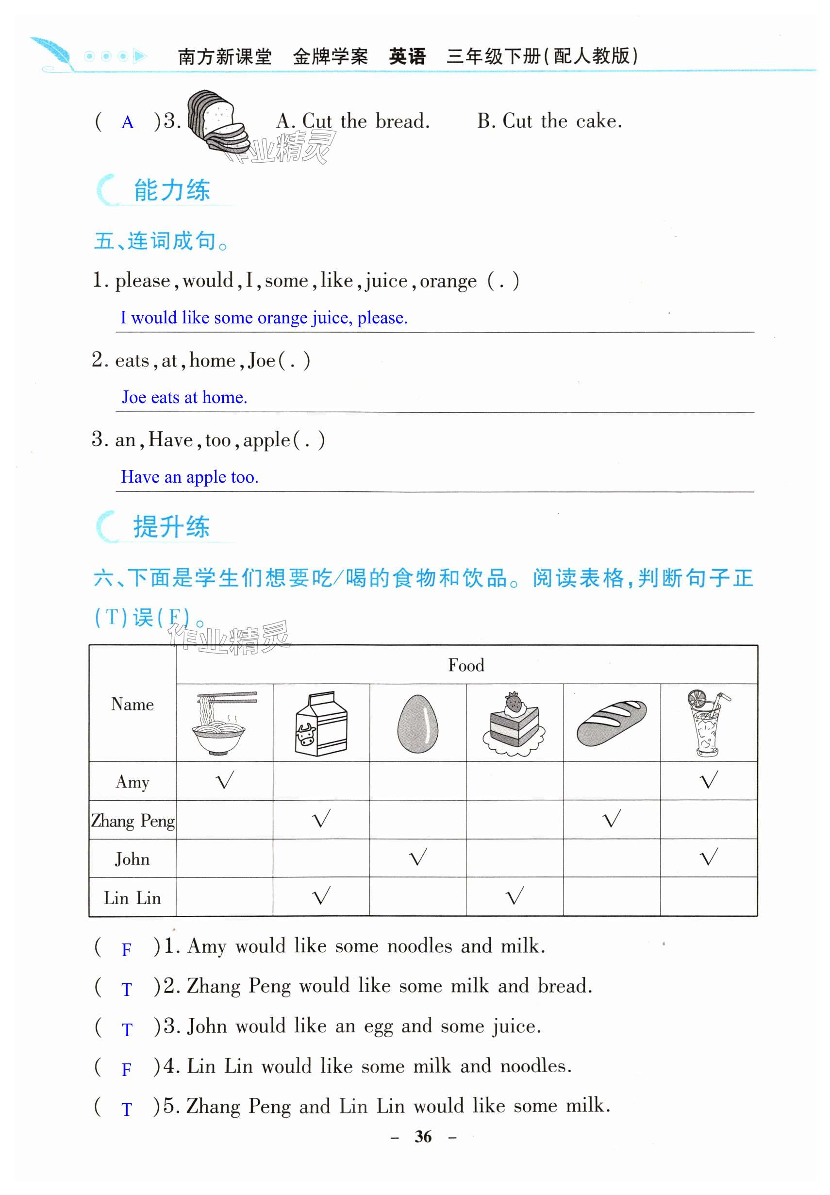 注:目前有些书本章节名称可能整理的还不是很完善,但都是按照顺序排列的,请同学们按照顺序仔细查找。练习册 2025年南方新课堂金牌学案三年级英语下册人教版 答案主要是用来给同学们做完题方便对答案用的,请勿直接抄袭。