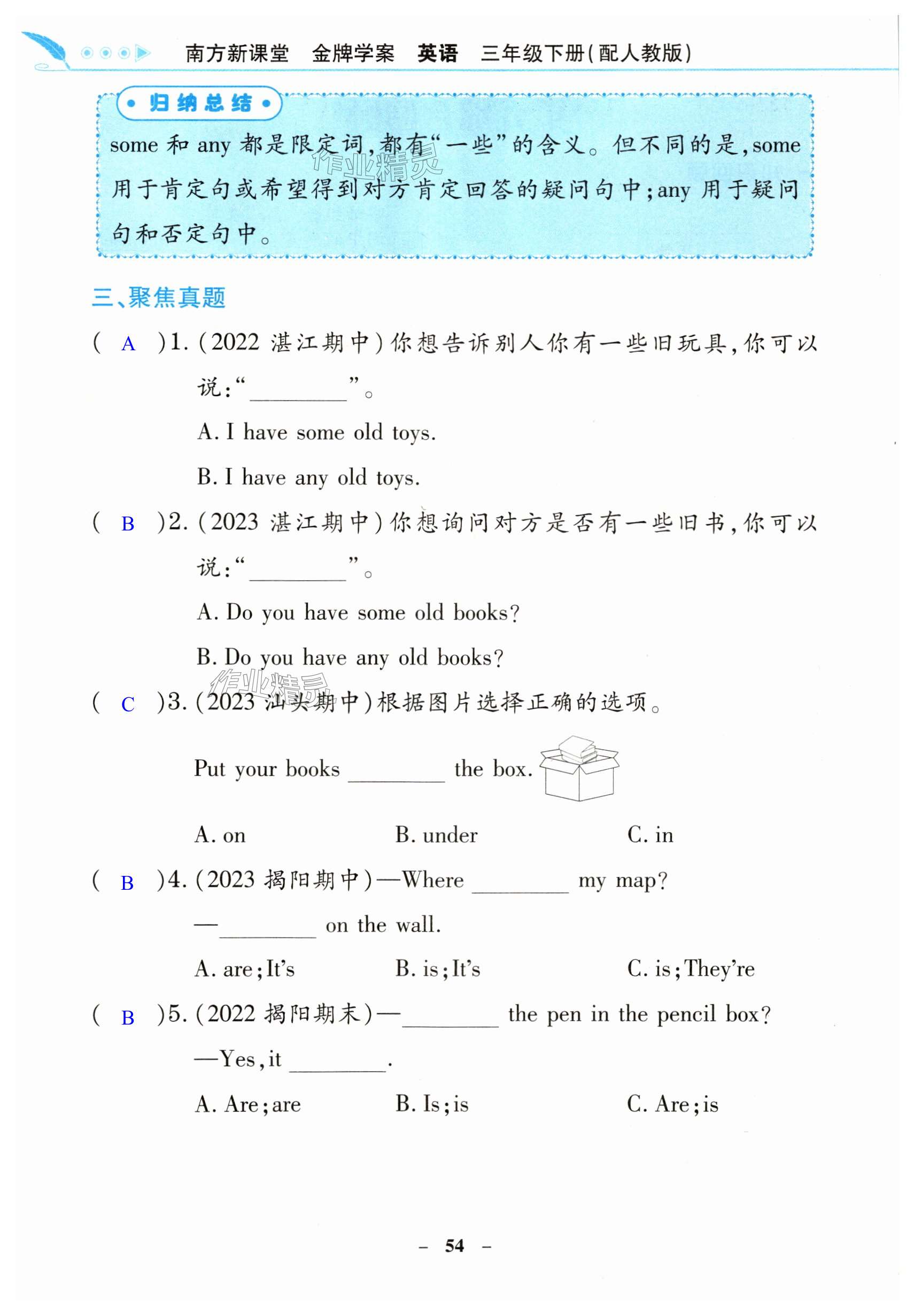 注:目前有些书本章节名称可能整理的还不是很完善,但都是按照顺序排列的,请同学们按照顺序仔细查找。练习册 2025年南方新课堂金牌学案三年级英语下册人教版 答案主要是用来给同学们做完题方便对答案用的,请勿直接抄袭。