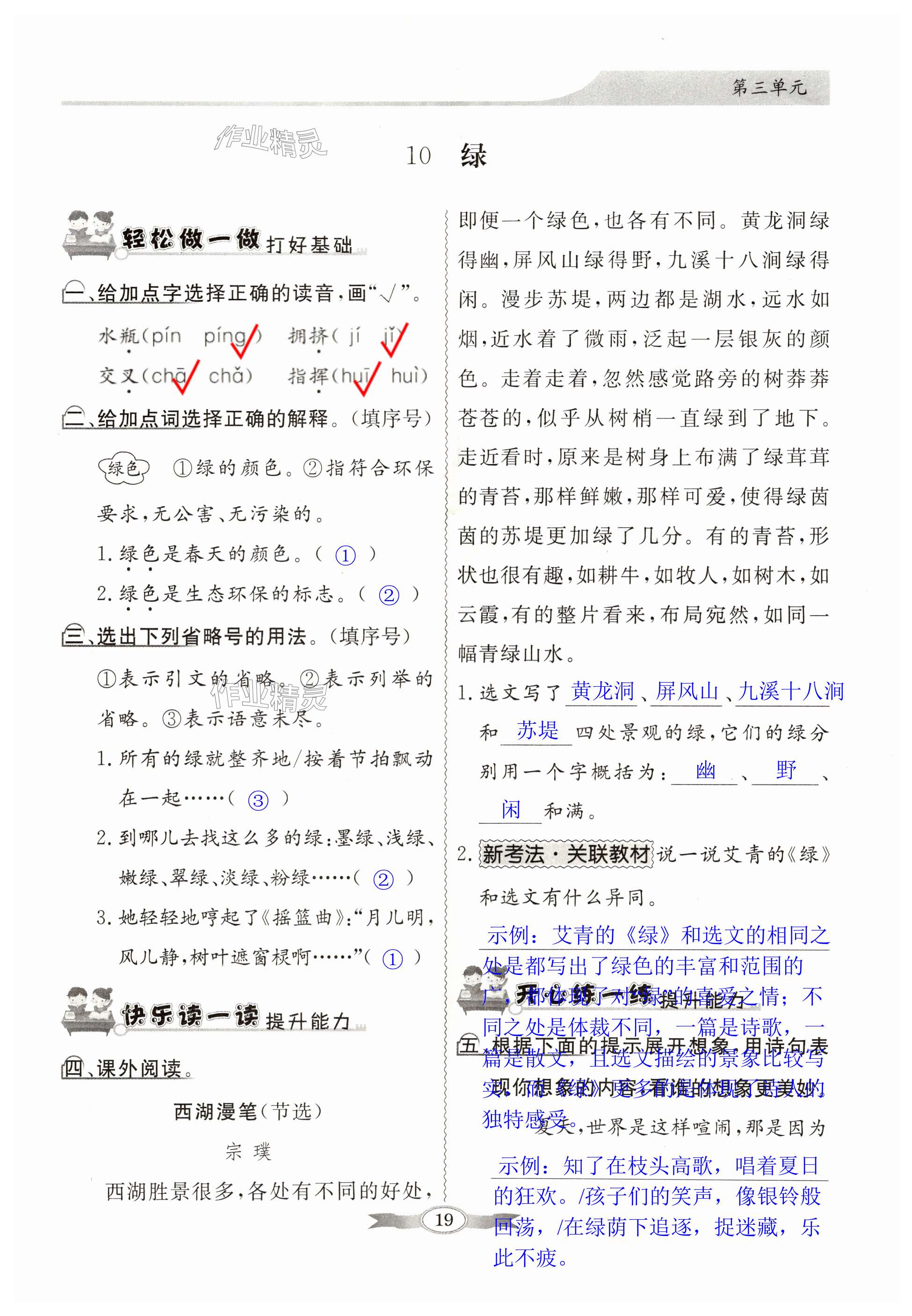注:目前有些书本章节名称可能整理的还不是很完善,但都是按照顺序排列的,请同学们按照顺序仔细查找。练习册 2025年同步导学与优化训练四年级语文下册人教版 答案主要是用来给同学们做完题方便对答案用的,请勿直接抄袭。