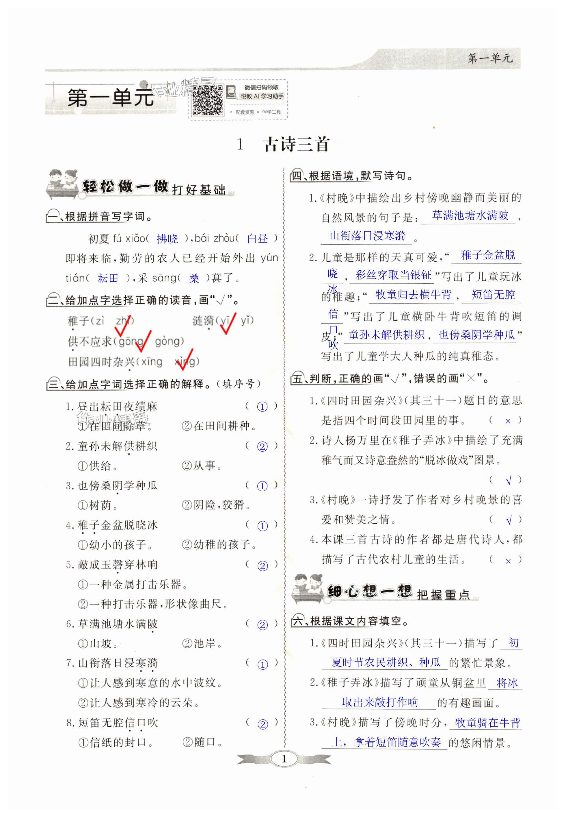 注:目前有些书本章节名称可能整理的还不是很完善,但都是按照顺序排列的,请同学们按照顺序仔细查找。练习册 2025年同步导学与优化训练五年级语文下册人教版 答案主要是用来给同学们做完题方便对答案用的,请勿直接抄袭。