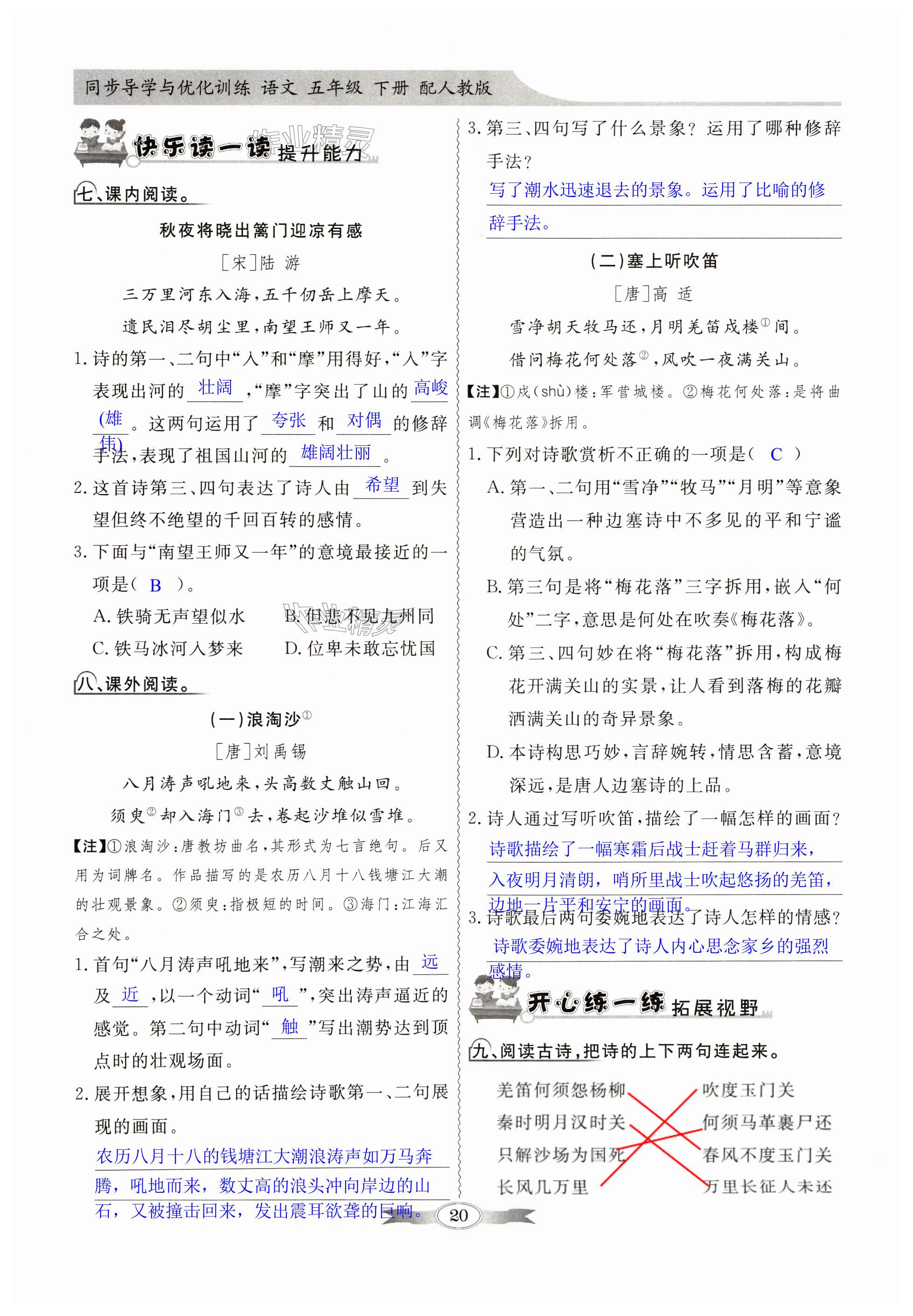 注:目前有些书本章节名称可能整理的还不是很完善,但都是按照顺序排列的,请同学们按照顺序仔细查找。练习册 2025年同步导学与优化训练五年级语文下册人教版 答案主要是用来给同学们做完题方便对答案用的,请勿直接抄袭。