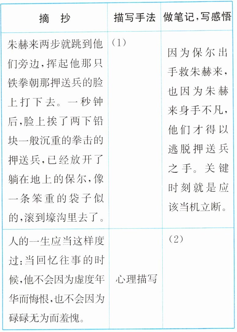 6. 摘抄和做笔记适合用来阅读、鉴赏小说,请结合《钢铁是怎样炼成的》完成以下读书卡。