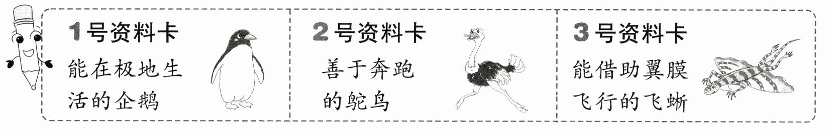 5. 3 3号资料卡中的飞蜥没有翅膀,但是能够借助翼膜飞行,符合没有翅膀也能“飞”这一主题
