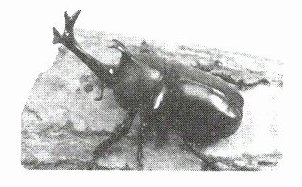 林林在树干上发现一只独角仙。它的壳是深色的,摸起来硬硬的,头部尖端有一只犀牛一样的角。
