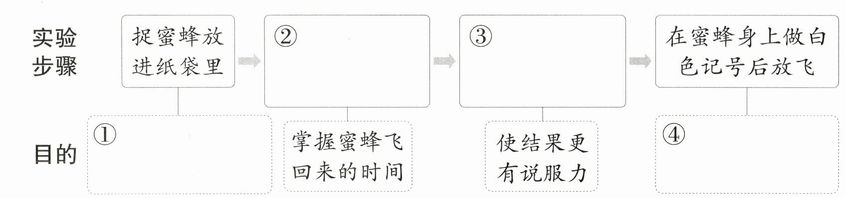 (1)①为实验作准备 ②叫小女儿在蜂窝旁等着 ③自己带着蜜蜂,走了四公里路 ④便于观察