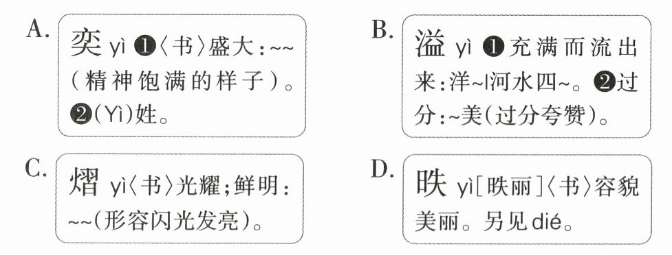 2. 根据字义,“yì yì生辉”中“yì”应该选()(2分)