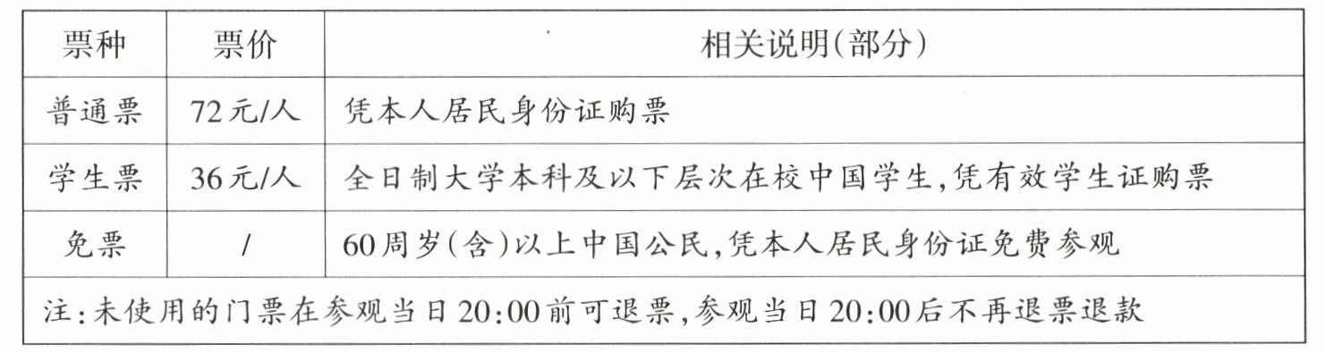 3. 〔学科融合〕结合提示,根据材料三可知,小聪一家参观三星堆博物馆购买门票需要花费______元。(2分)