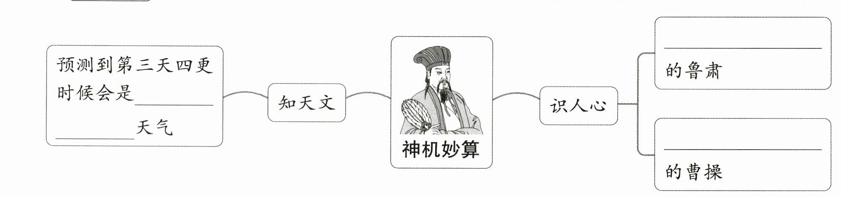 3. 思维提升 回忆《草船借箭》的故事,把下面的示意图补充完整。(4分)