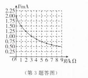 $\therefore$当$R = 3$时,$I = \frac{6}{3 + 3} = 1(\text{mA})$. 故答案为 1.