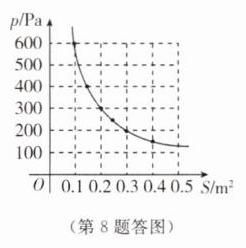 |受力面积S/m²|0.1|0.15|0.2|0.25|0.3|0.4|
