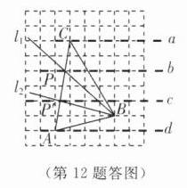12. 如图,在每个小正方形的边长为1的网格中,点$A$,$B$,$C$均在格点上.