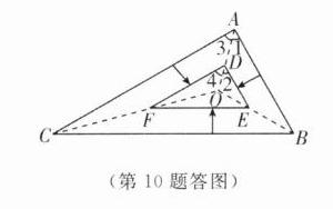 10. 将△ABC的各边按如图所示的方式向内等距缩1 cm得到△DEF,有以下结论: