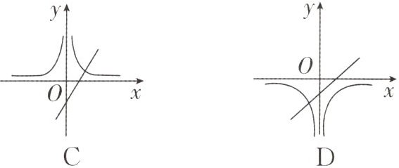 11. 在同一平面直角坐标系中,函数$y = kx - k(k \neq 0)$与$y = \frac{k}{\vert x \vert}$的大致图象为( )。