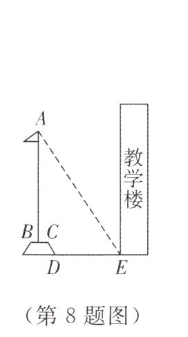 8. 如图,旗杆及升旗台的剖面和教学楼的剖面在同一平面上,旗杆与地面垂直,在教学楼底部E点处测得旗杆顶端的仰角∠AED=58°,升旗台底部到教学楼底部的距离DE=7米,升旗台坡面CD的坡度i=1∶0.75,坡长CD=2米,若旗杆底部到坡面CD的水平距离BC=1米,则旗杆AB的高度约为( )