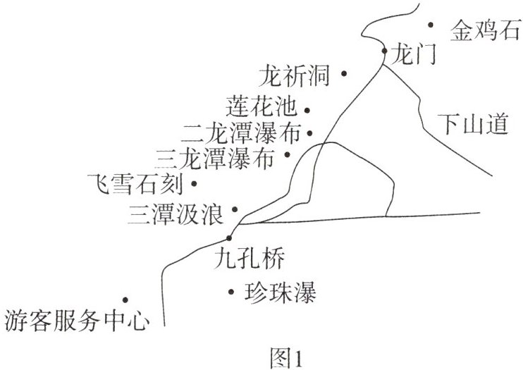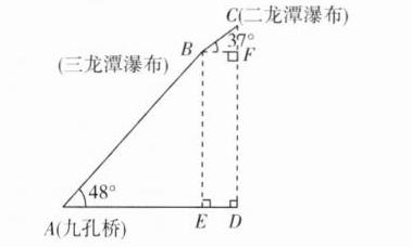 7. 渔湾是国家“AAAA”级风景区,图1是景区游览的部分示意图.如图2,小卓从九孔桥A处出发,沿着坡角为48°的山坡向上走了92 m到达B处的三龙潭瀑布,再沿坡角为37°的山坡向上走了30 m到达C处的二龙潭瀑布.求小卓从A处的九孔桥到C处的二龙潭瀑布上升的高度DC为多少米.(结果精确到0.1 m,参考数据:sin 48°≈0.74,cos 48°≈0.67,sin 37°≈0.60,cos 37°≈0.80)