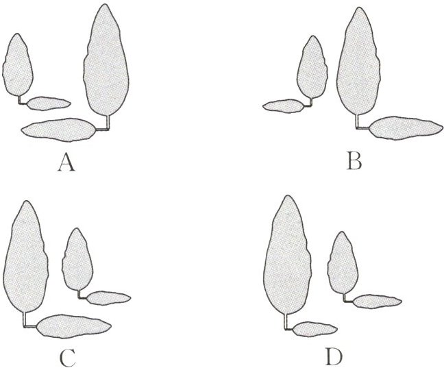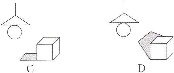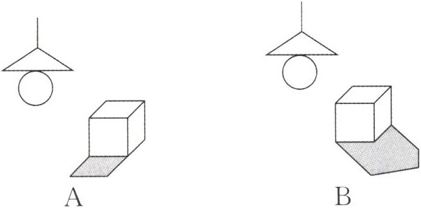 5 如图,灯光与物体的影子的位置最合理的是( ).
