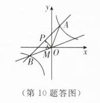 10. 如图,在平面直角坐标系中,直线$y = x + 2$与反比例函数$y = \frac{k}{x}(k\neq0)$的图象交于A,B两点,点A的横坐标为1.