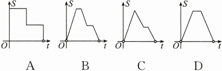 B 解析:点P在AD上运动时,△ABP的面积S随着时间t的增大而增大;点P在DE上运动时,△ABP的面积S随着时间t的增大保持不变;点P在EF上运动时,△ABP的面积S随着时间t的增大而减小;点P在FG上运动时,△ABP的面积S随着时间t的增大保持不变;点P在GB上运动时,△ABP的面积S随着时间t的增大而减小. 符合要求的只有选项B。