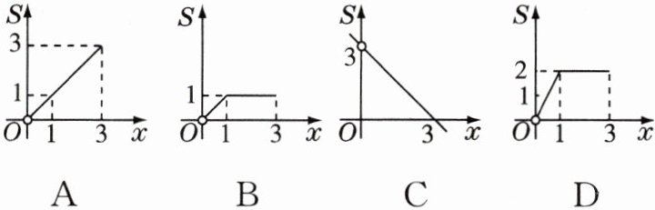 B 解析:当$0 < x \leq 1$时,S随x的增大而增大;当$1 < x \leq 3$时,S的值不变,为1。