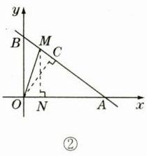 ②当AM = AO时,过点M作MN⊥x轴于点N,过点O作OC⊥AB于点C,如图②,易求AB = 5,从而求出OC = 12/5。