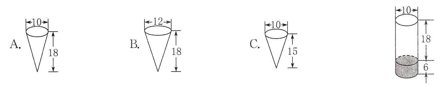(3) 小明做了1个圆柱和3个圆锥,规格如下图(单位:厘米),将圆柱里的水倒入圆锥( ),正好倒满。