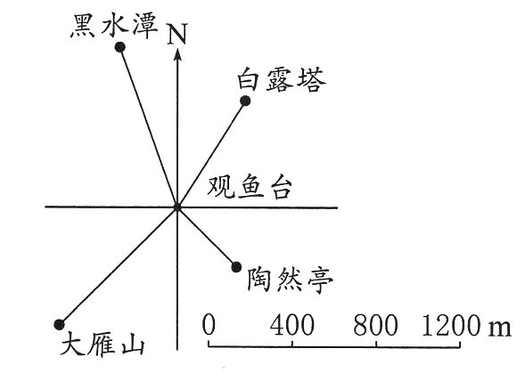 4. 下面是某风景区的平面图,以观鱼台为观测点,先量一量,再填表。