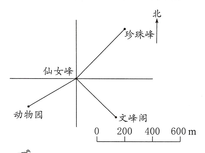 我能行 3. 下图是某旅游景区的平面图。以仙女峰为观测点,先量一量,再填表。