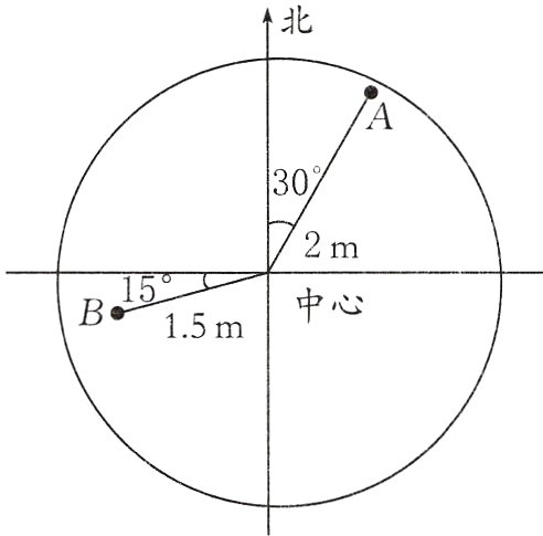 (2) 王浩也是一名足球运动员,他的球落在中心北偏西40°方向1.2米处,请你在图上标出王浩的球的落点处C。