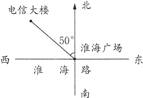 (1) 电信大楼位于淮海广场( )偏( )50°方向2000米处。