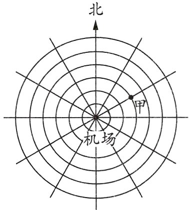 4. 下图是一个飞机场的雷达屏幕,每相邻两个圆之间的距离是30千米。以机场为观测点,飞机甲在北偏东60°方向90千米处。飞机乙、丙的位置分别如下。