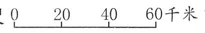 6. 1路公共汽车从公交公司出发,向( )行( )千米到达书店,再向( )偏( )60°方向行( )千米到中心广场。