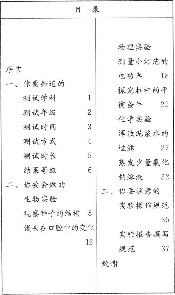 注:由于试卷版面有限,目录未能展示实验操作技能测试的所有信息。