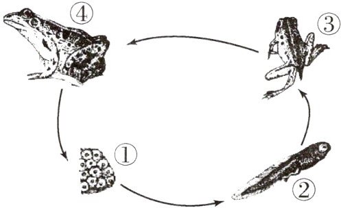 (1)青蛙的发育要经过四个时期,而且________的外部形态和内部结构都和________很不相似,因此,青蛙的发育方式是________。