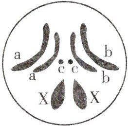 4. 下图为雌果蝇体细胞中的染色体示意图,其卵细胞中染色体的组成是( )。