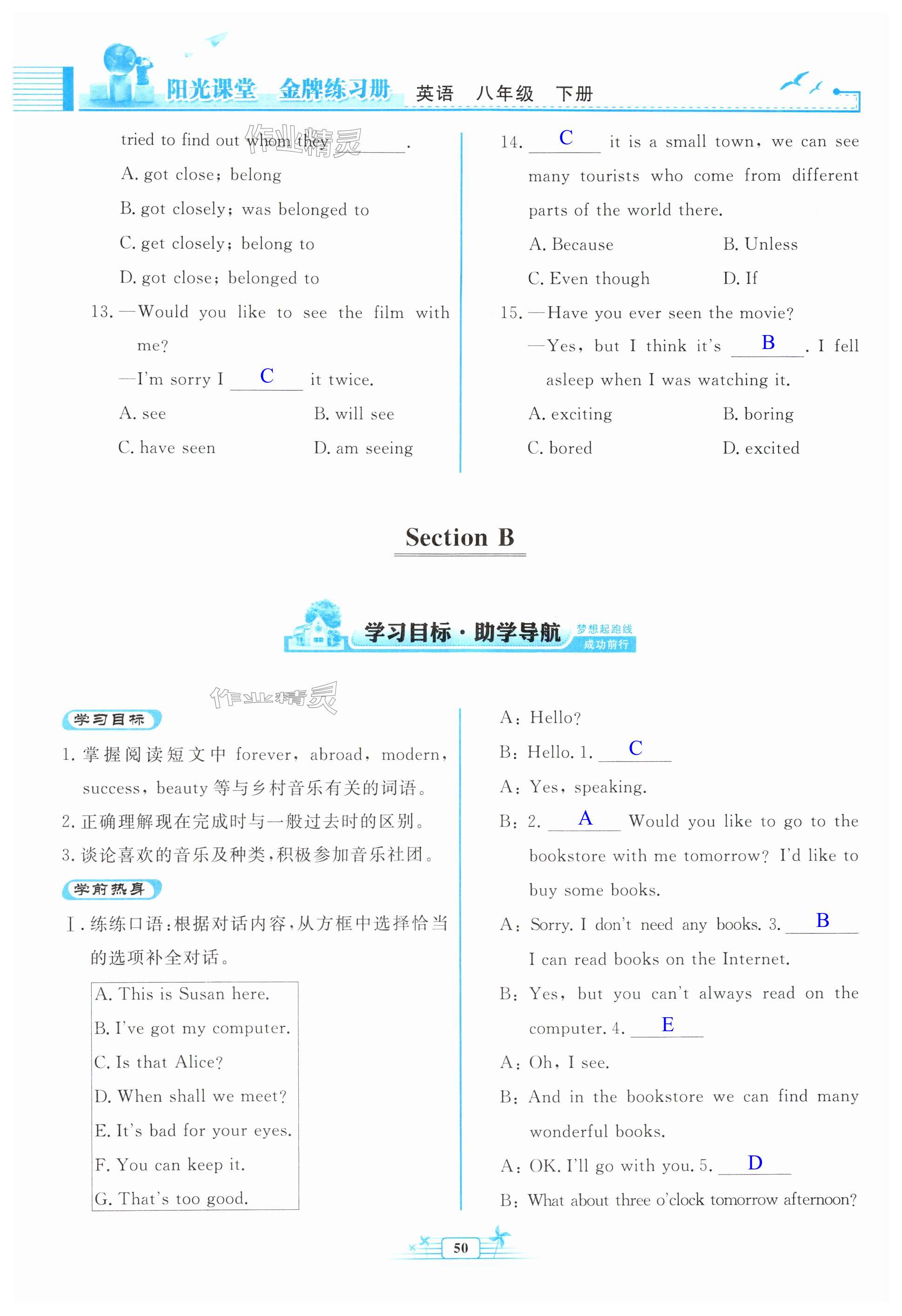 注:目前有些书本章节名称可能整理的还不是很完善,但都是按照顺序排列的,请同学们按照顺序仔细查找。练习册 2025年阳光课堂金牌练习册八年级英语下册人教版 答案主要是用来给同学们做完题方便对答案用的,请勿直接抄袭。