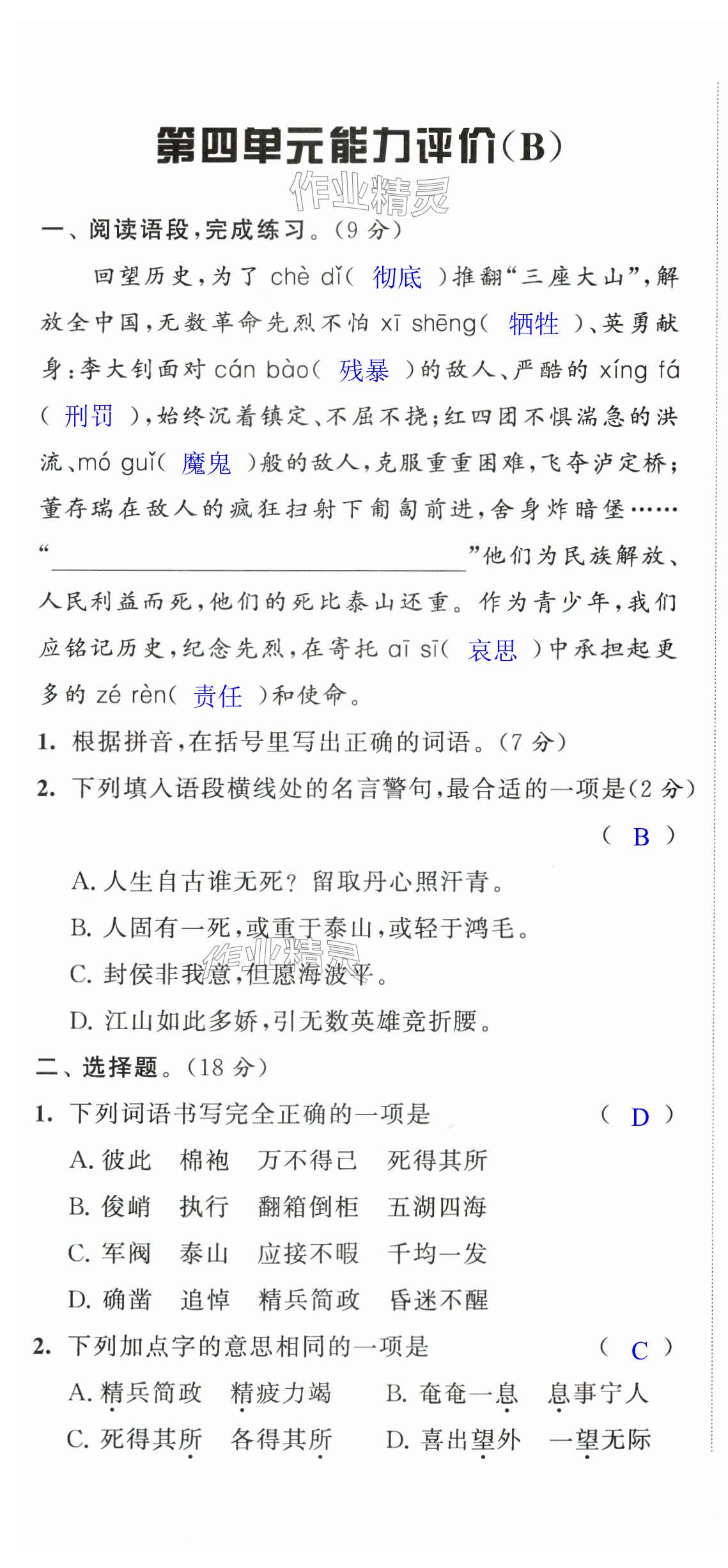 注:目前有些书本章节名称可能整理的还不是很完善,但都是按照顺序排列的,请同学们按照顺序仔细查找。练习册 2025年配套单元检测江苏凤凰美术出版社六年级语文下册人教版 答案主要是用来给同学们做完题方便对答案用的,请勿直接抄袭。