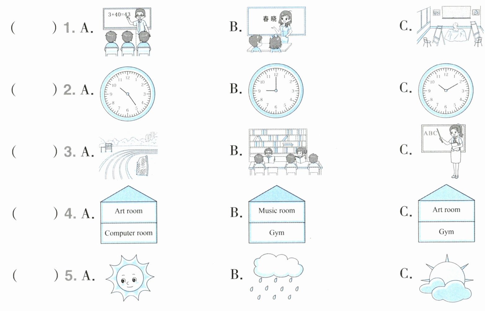 二、听句子,选出与你所听内容相符的图片。(5分)