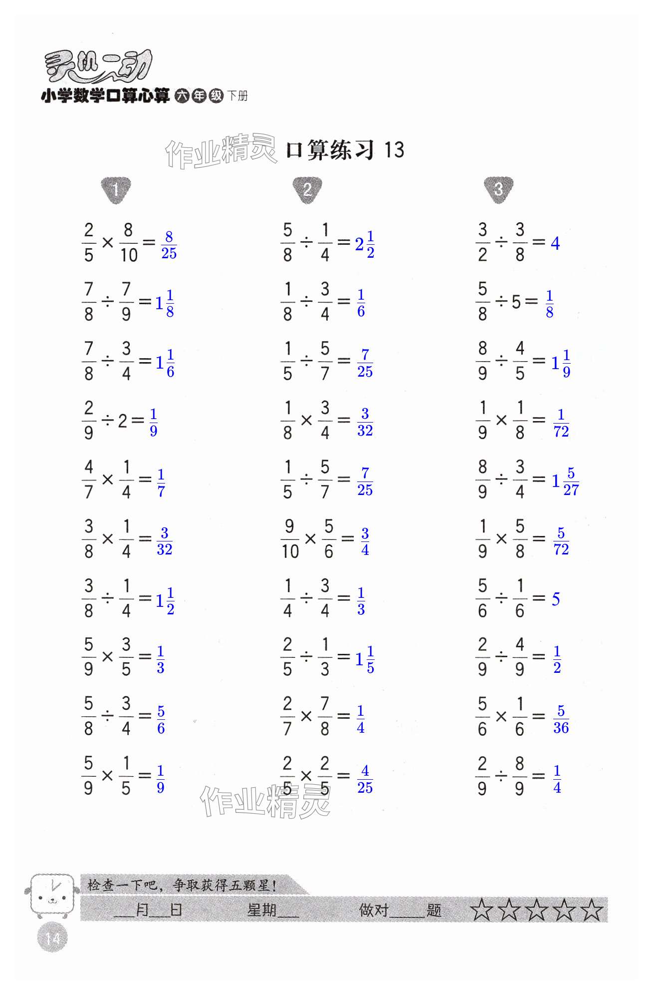 注:目前有些书本章节名称可能整理的还不是很完善,但都是按照顺序排列的,请同学们按照顺序仔细查找。练习册 2025年灵机一动口算心算六年级数学下册苏教版 答案主要是用来给同学们做完题方便对答案用的,请勿直接抄袭。