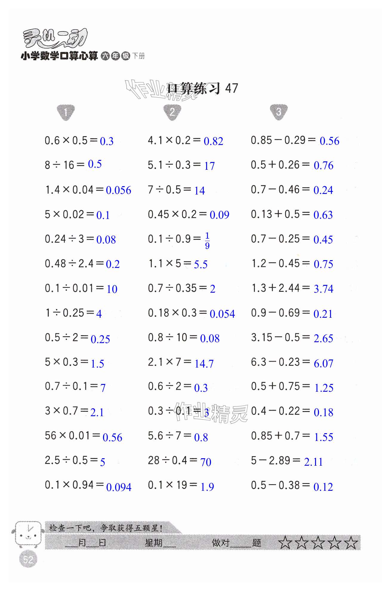 注:目前有些书本章节名称可能整理的还不是很完善,但都是按照顺序排列的,请同学们按照顺序仔细查找。练习册 2025年灵机一动口算心算六年级数学下册苏教版 答案主要是用来给同学们做完题方便对答案用的,请勿直接抄袭。