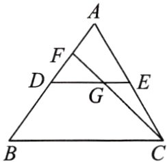 ,作AH//BC交CF的延长线于H,因为DE//BC,所以AH//DE。因为点E为AC的中点,所以AH = 2EG。因为AH//DG,所以△AHF∽△DGF,所以$\frac{AH}{DG}$ = $\frac{AF}{DF}$,所以$\frac{2EG}{DG}$ = $\frac{AF}{DF}$,即2DF·EG = AF·DG。