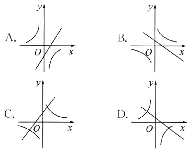 8.(德阳市中考)一次函数y = ax + 1与反比例函数y = -$\frac{a}{x}$在同一平面直角坐标系中的大致图象是 ( )